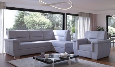 Zestaw wypoczynkowy składający się z Narożnik Cosmo z funkcją spania i Fotel Cosmo. Główna zaletą narożnik i fotela COSMO jest wysoki komfort siedzenia, który zapewnia nowoczesne wypełnienie siedziska i oparcia. W siedzisku zastosowano sprężynę falistą o podwyższonym standardzie, dodatkowo sprężynę kieszeniową typu POCKET. Ozdobne przeszycia podkreślają linie i kształt narożnika i fotela COSMO, a miękkie wykończenie boku poduszką pozwala na komfortowy wypoczynek. Element narożny szezlong pozwala na wygodne wyprostowanie nóg. Narożnik posiada dodatkowo pojemnik na pościel i funkcję spania typu wózek.