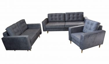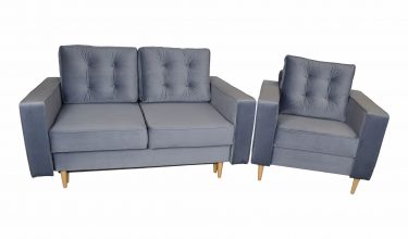 Zestaw wypoczynkowy składający się z Kanapa 3os Luna z funkcją spania, Kanapa 2os Luna z funkcją spania, fotel Luna i pufy Luna. Zestaw LUNA to połączenie wygody i stylu. Prosta bryła mebla została wykończona elementami ozdobnymi kedrą oraz pikowaniami guzikami. Wypełnienie siedziska stanowi sprężyna falista o podwyższonym standardzie oraz pianka wysokogatunkowa PUR dzięki czemu mebel jest miękki i wygodny. Kanapa posiada pojemnik na pościel i funkcję spania typu DL z automatem ułatwiającym rozkładanie. Kolekcja Luna posiada wysokie nóżki (10cm) zmieści się pod nią robot sprzatający.