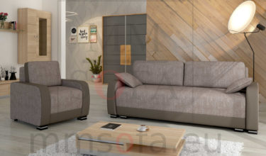 Zestaw wypoczynkowy składający się z kanapy i fotela. Nowoczesna stylistyka zestawu pozwala na wkomponowanie do niemal każdego wnętrza. Elementem wyróżniającym zestaw jest ozdobna wstawka na bokach i poduchach. W siedzisku i oparciu kanapy zastosowano sprężynę falistą o podwyższonym standardzie i sprężynę bonel. Kanapa posiada pojemnik na pościel i funkcję spania typu DL z wspomaganiem otwierania.