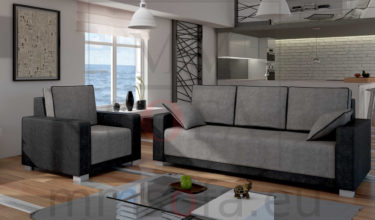 Zestaw wypoczynkowy składający się z kanapy i fotela. Został zaprojektowany z dbałością o szczegóły, elegancka forma mebla zaprasza do wypoczynku. Wysoki komfort użytkowania został osiągnięty dzięki zastosowaniu sprężyny falistej o podwyższonym standardzie oraz sprężyny bonell w siedzisku i oparciu. Elementem ozdobnym zestawu są delikatne zdobienia kedrą na bokach i poduchach. Kanapa posiada duży pojemnik na pościel i funkcję spania typu DL z wspomaganiem otwierania.